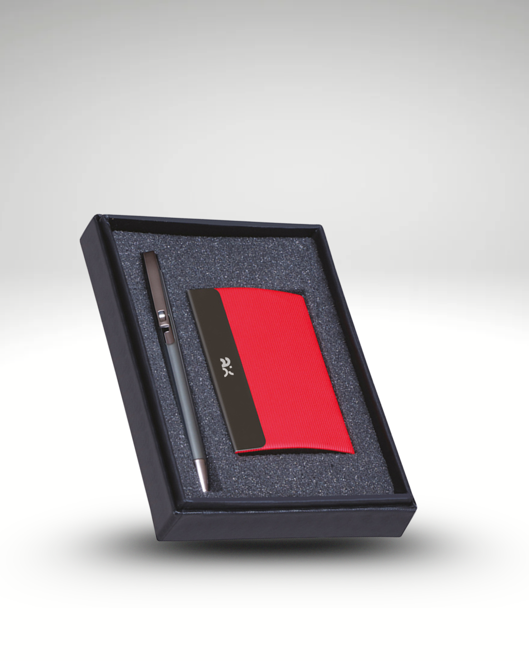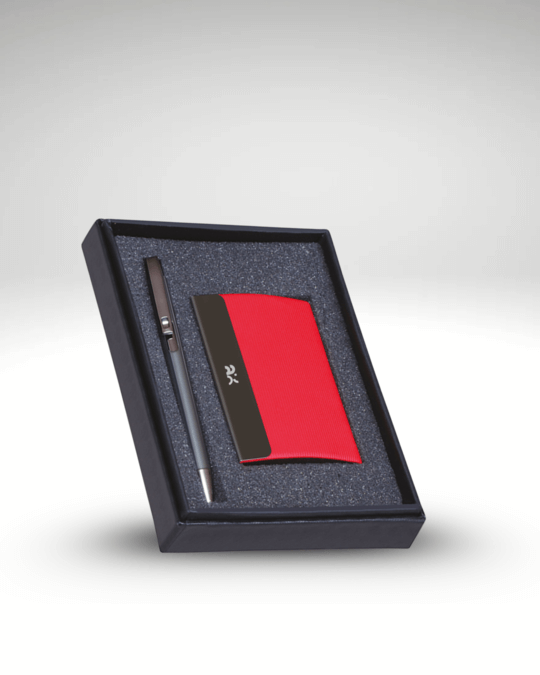 The Executive Edge Set includes a sleek pen and premium cardholder, offering style and practicality for corporate gifting.